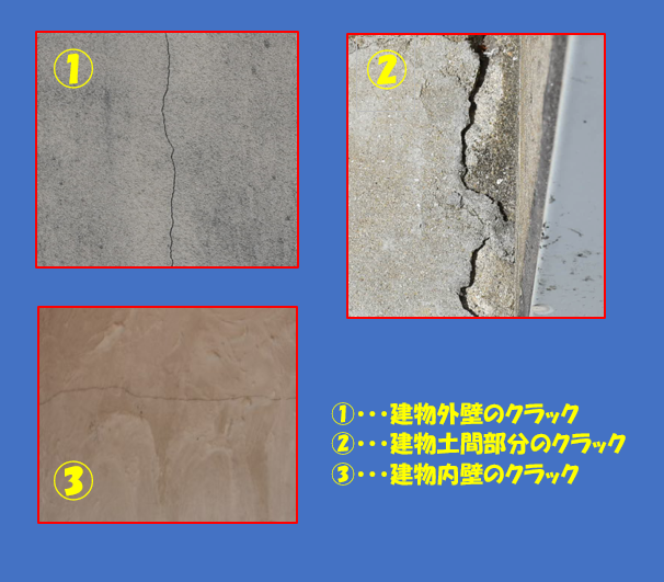 工事や地震等に生じる揺れ等により発生する場合。