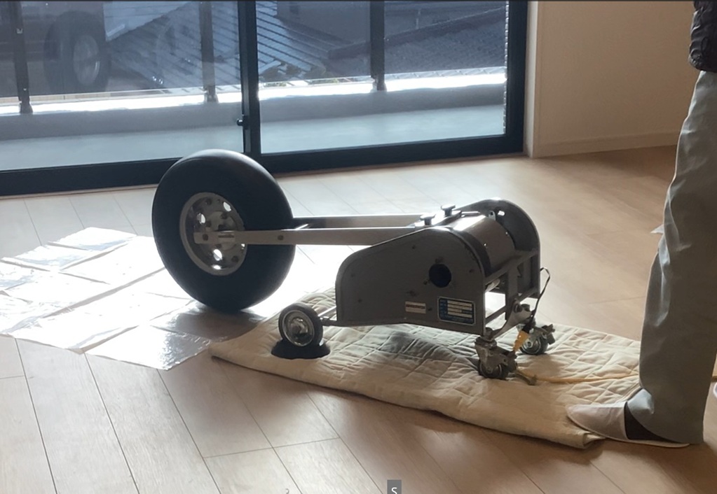 重量床衝撃音装置(バングマシン)を使い、先端についているタイヤ を約1m弱の高さから自動的に落下させ